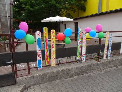 Unter dem Motto „Unser lebendiges altes Haus“ bereiteten sich alle Scheffelstraßenkinder und -Erzieherinnen auf das große Fest vor. Im Vorfeld wurden die Lieblingsplätze und der Kindergarten von den Kindern gemalt und damit eine Bilderausstellung gestaltet, alte Fotos des Kindergartens angeschaut, Dekoration für das Fest gebastelt und Lieder und Tänze einstudiert.