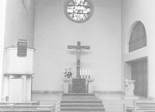 Die damalige Kirche war ost-westlich orientiert, die ausgezeichnet gemauerten Fundamente ihres Langhauses gaben - dort wo sie der Neuplanung im Wege standen - bei ihrem Abbruch den freiwilligen Mitarbeitern aus der Gemeinde ordentlich was zu schaffen.